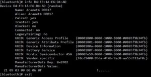 - after successfully paired run info <device address>